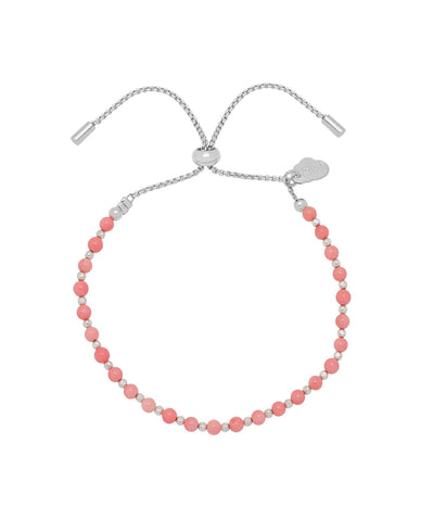 This classic Amelia bracelet is dotted with coral agate and silver plated beads with a slider fastening, making it suitable for any wrist size. A natural stone formed from ancient corals, coral agate is believed to promote inner peace and positivity that helps strengthen relationships.The slider fastening means it will be suitable for any wrist size!