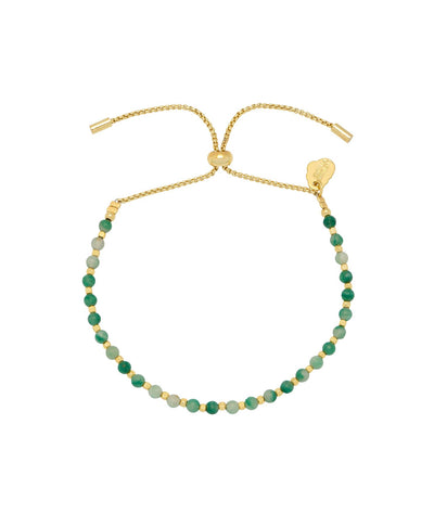 This classic Amelia bracelet is dotted with green quartz and gold plated beads with a slider fastening, making it suitable for any wrist size. Green quartz is believed to bring luck, encouraging good fortune. The slider fastening means it will be suitable for any wrist size!