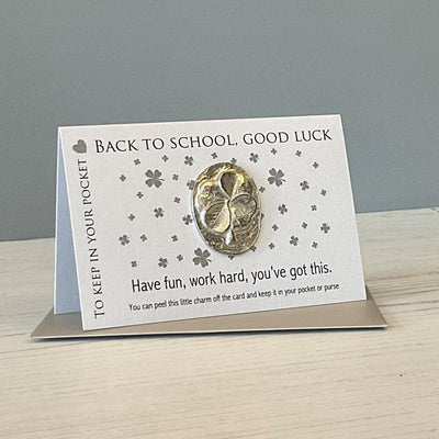 Back To School Good Luck - Pocket Charm - Pewter Four Leaf Clover/Shamrock - Compton & Clarke