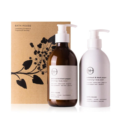 Bath House - Patchouli & Black Pepper - Bodycare Duo Gift Set - Hair & Body Wash 300ml & Body Lotion 300ml