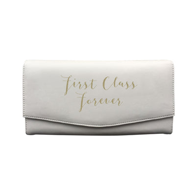 First Class Forever....if only?! This chic wallet will keep your travel documents organised and safe. Each wallet has four handy compartments and a zipped pocket on the reverse.