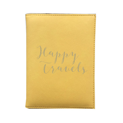 Bombay Duck - Happy Travels - Sunshine Yellow/Gold Passport Holder/Cover- Printed Faux Leather
