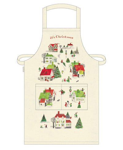 Cavallini - 100% Natural Cotton Vintage Apron - 48x80cms - Vintage Christmas Village