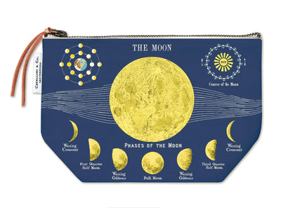 Cavallini - 100% Natural Cotton Vintage Pouch Bag - 15x22cms - Moon Chart/Phases of The Moon