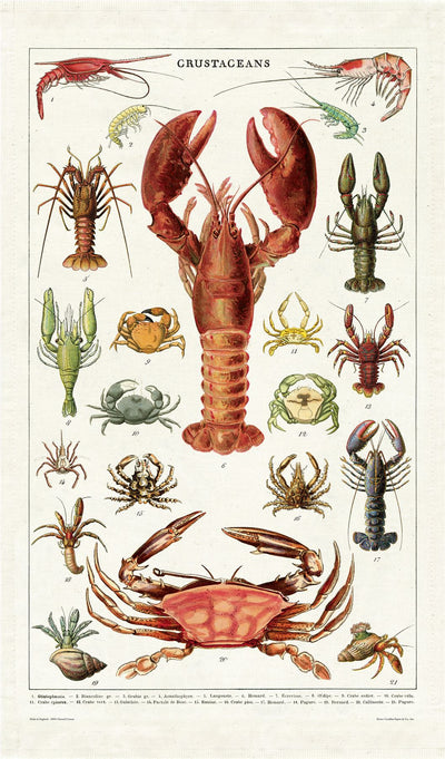 Cavallini - 100% Natural Cotton Vintage Tea Towel - 80 x 47cms - Crustaceans