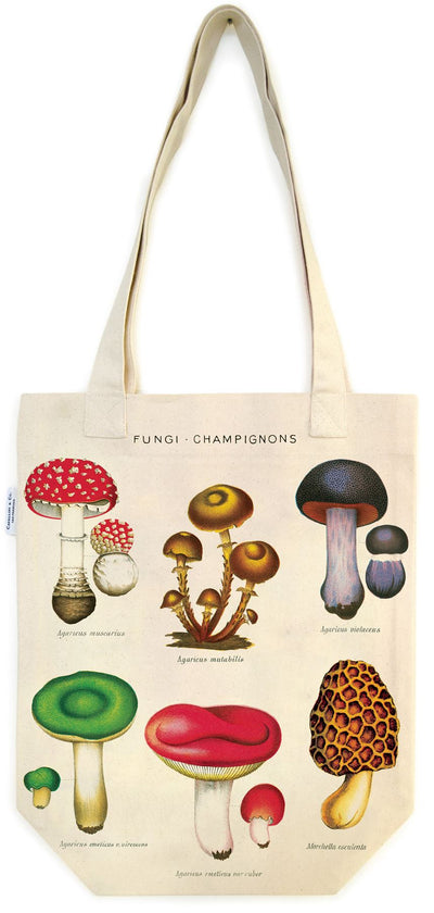 Cavallini - 100% Natural Cotton Vintage Tote Bag - 33x40.5cms - Mushrooms/Fungi