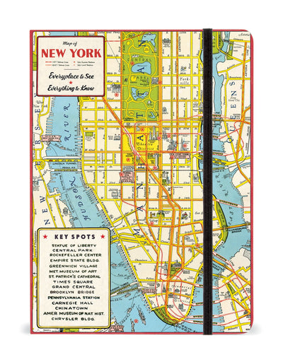 Cavallini - Large Lined Notebook 6x8ins - New York City Map - 144 Pages With Elastic Enclosure