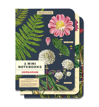 Cavallini - Set of 3 Mini Notebooks - Herbarium - Lined, Blank & Graph Interiors