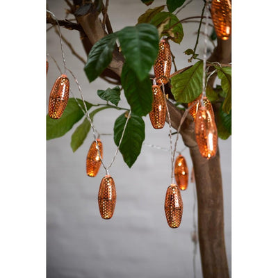 Moroccan themed fairy light chain, with 16 decorative copper coloured metal lanterns - the perfect way to brighten up the corner of any room.
