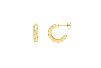 Chunky and cosmic, what more could you want from a pair of hoops? These gold plated Chunky Cosmic Hoops add glistening flair to any look with the embedded CZ stones and star cut design.