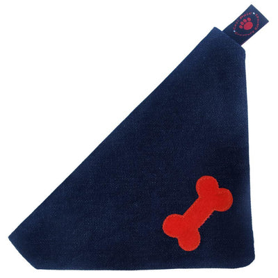 Creature Clothes - Slip on Bandana - Red Bone on Blue Denim - Handmade in the UK - Large