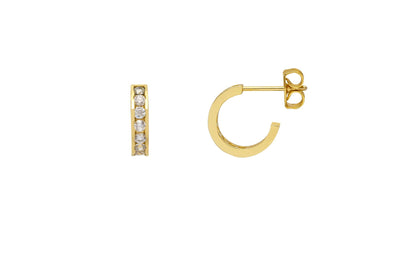 Say hello to your new everyday hoops. Consisting of CZ stones, these simple gold plated hoops are the perfect piece to add to your jewellery wardrobe.Wear day to night or desk to dinner, these earrings are versatility at its finest.