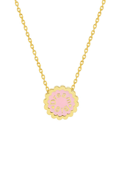 Dream Big Pink Enamel Necklace - Gold Plated - Big Dreams Start Small - Estella Bartlett