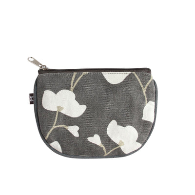 The Clara purse by Earth Squared has a scooped shape, with a zip across the top edge. This cute little coin purse is perfectly proportioned to tuck neatly in your bag or pocket and looks fab in this bold flower printed canvas.