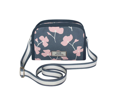 Earth Squared - Robin Cross Body Bag - Spring Blossom Canvas - Pink & Navy - 22x18x6cms