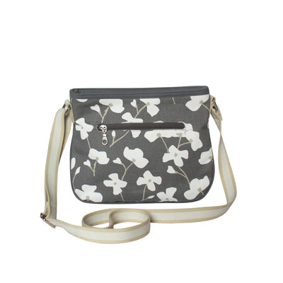 Earth Squared - Rosy - Blossom Print Messenger Shoulder Bag - Charcoal - 27x22x5cms