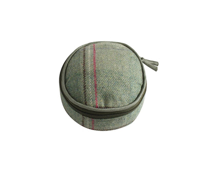 Earth Squared - Round Jewellery Pouch - Tweed Wool - Fenton - Brown/Green - 10x10x5cms