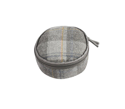 Earth Squared - Round Jewellery Pouch - Tweed Wool - Fidra - Grey & Mustard - 10x10x5cms