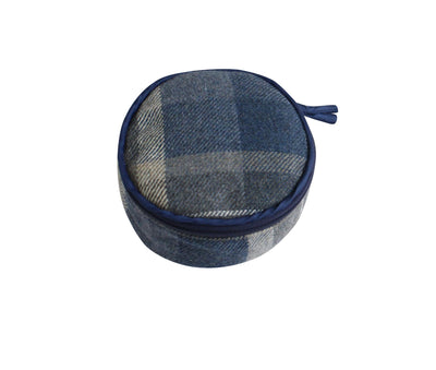 Earth Squared - Round Jewellery Pouch - Tweed Wool - Humbie - Blue & Grey - 10x10x5cms