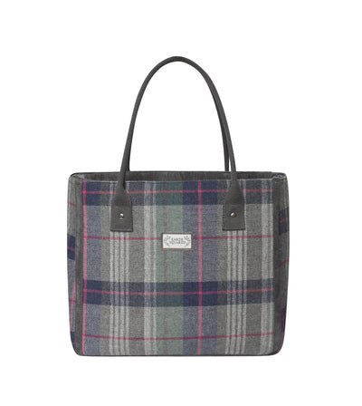 Earth Squared - Tote Shoulder Bag - Drem Tweed Wool - Grey & Pink - 35x26x14cm