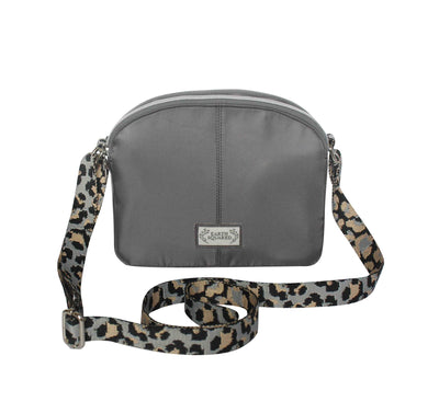 Earth Squared - Voyage Half Moon Messenger Bag - Grey/Leopard Print Strap - 21x17x5cms