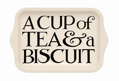 Featuring the words 'A Cup Of Teas & a Biscuit' this cute little tin tray from the Black Toast & Marmalade range of Emma Bridgewater is ideal for carrying a couple of mugs of tea and coffee or biscuits and cake.