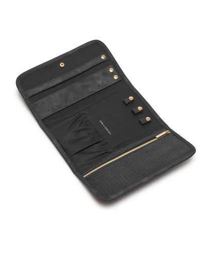 Folding Jewellery Pouch - Black Faux Croc - 22.5 x 13cms - Estella Bartlett