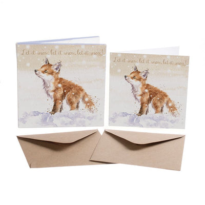 Let It Snow - Fox Cub - 8 Luxury Gold Foiled Xmas Cards & Envelopes - Wrendale Designs