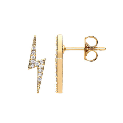 Delicate but filled with beautiful detail, these gold plated cubic zirconia lightning bolt shaped stud earrings are a must for any jewellery collection.