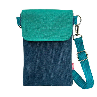 Lua - Thick Cotton Canvas Mobile Phone Pouch/Crossbody Bag - Denim Blue/Green  - 13 x 19cms