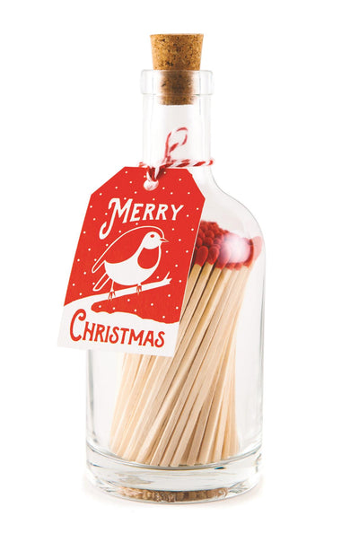 Merry Christmas Robin (GB47) - Glass Bottle - 125 Luxury Safety Matches - Archivist