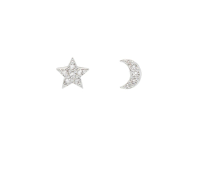 Moon & Star Cubic Zirconia Stud Earrings - Silver Plated - Estella Bartlett