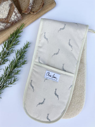 Olivia Jane Designs - 100% Cotton Double Oven Glove/Mitt - Home Late Hare & Hearts