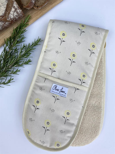 Olivia Jane Designs - 100% Cotton Double Oven Glove/Mitt - Sunny Side Up Sunflowers