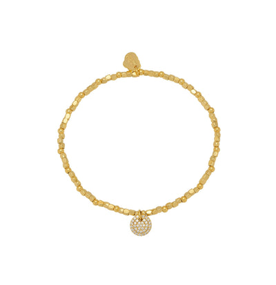 A minimalist accessory with a modern twist, our Pave Set Cubic Zirconia Disc Sienna Bracelet is both chic and comfortable. Its stretch fit allows for easy wearability whilst the statement Cubic Zirconia disc pendant adds a touch of elegance.