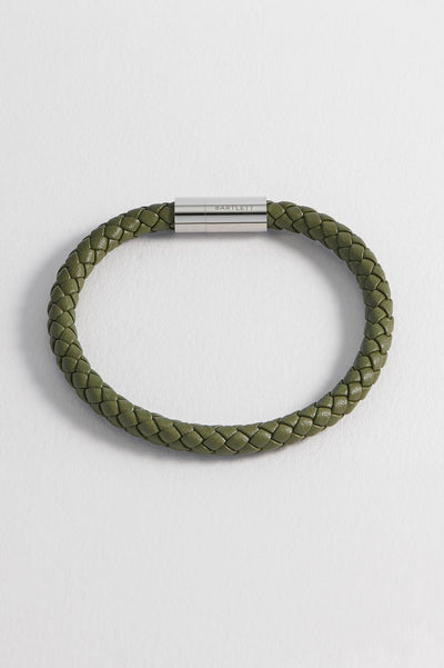 Bartlett's stainless steel & leather single plaited bracelet is the perfect everyday piece that can be styled with a variety of looks. Featuring a khaki brown tone leather in a woven detail, this piece adds texture to whatever you're wearing.