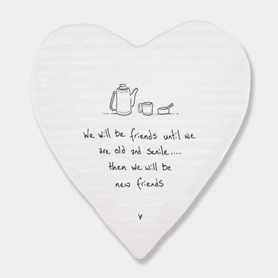 Porcelain Heart Coaster - Friends Until Old & Senile - East Of India - 10x11x0.5cms