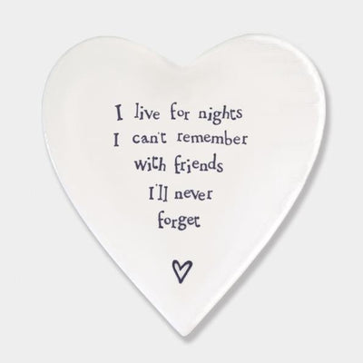 Porcelain Heart Coaster - I Live For Nights I Can't Remember - East Of India - 10x11x0.5cms
