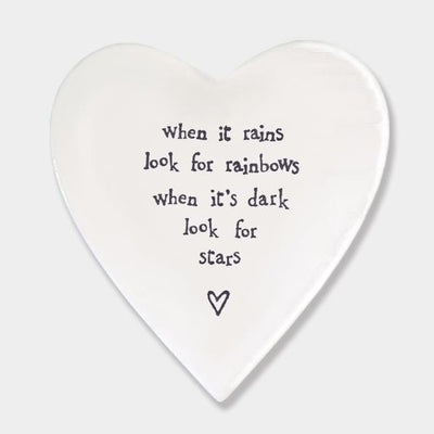 Porcelain Heart Coaster - When It Rains Look For Rainbows - East Of India - 10x11x0.5cms