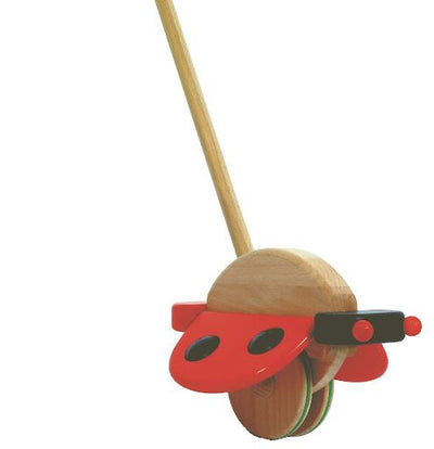 The flying Ladybird Pushalong is a fabulous toy to push and watch! As you push the stick the wheels go round and makes the ladybird 'fly' and flap its wings. The flying ladybird encourage the new walker to push the stick around - the more practice he/she gets the better they will become.