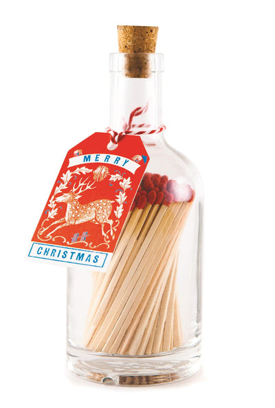 Red Stag Merry Christmas (GB44) - Glass Bottle - 125 Luxury Safety Matches - Archivist
