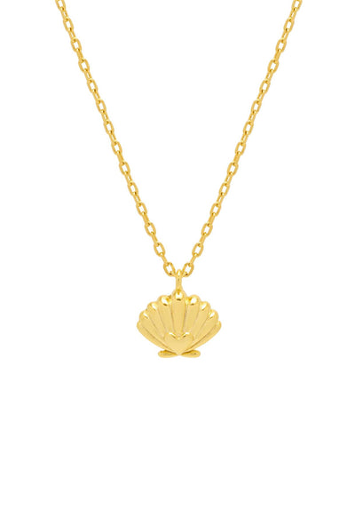 Reminiscent of summer days at the beach, our gold-plated Scallop Heart Pendant Necklace features a dainty chain with a scallop pendant detailed with a tiny heart. This is the perfect necklace for beach-lovers.