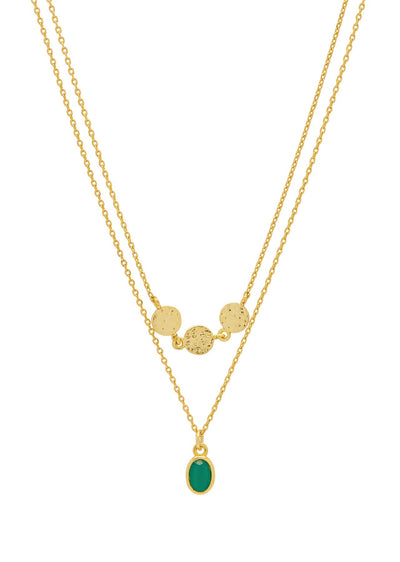 Textured Disc & Green Onyx Stone Duo Necklace - Gold Plated - Treasure Me - Estella Bartlett