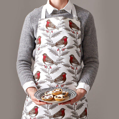 Bring Christmas cheer to the kitchen during all your festive feasting with this jolly Robin & Holly apron. Printed on 100% cotton, it's a great kitchen cover up and also makes a wonderful stocking filler or Secret Santa for the discerning chef.