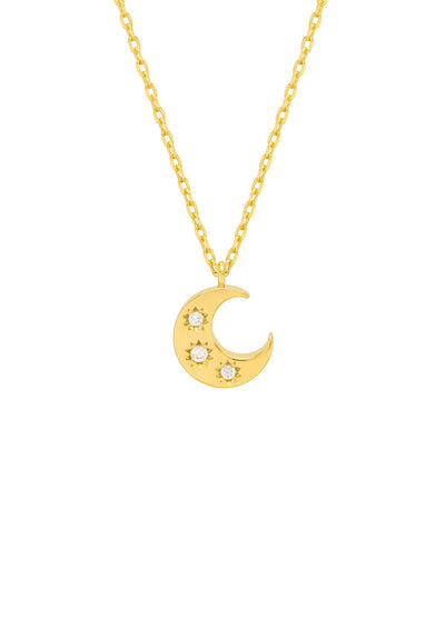 Three Stone Moon Necklace - Gold Plated - Chase The Moonlight - Estella Bartlett
