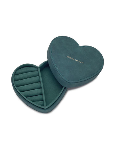 Velvet Heart Shaped Jewellery Box/Case - Forest Green/Teal - 13x12x5cms - Estella Bartlett