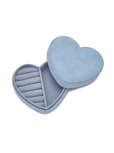 Velvet Heart Shaped Jewellery Box/Case - Powder Blue/Grey - 13x12x5cms - Estella Bartlett