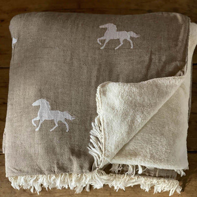 Blanket Throw With Fleece - Horse - Stone - Ailera 120x170cms