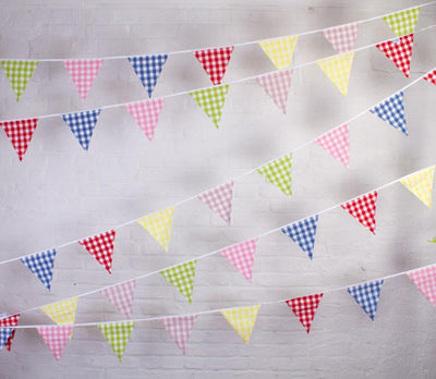 100% Cotton Bunting - Farmhouse Kitchen - Multi-Coloured Gingham - 10m/33 Double Sided Flags