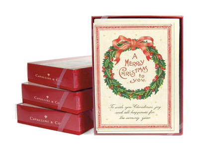 Cavallini - 10 x Glitter Greetings Christmas Cards/Notes - Christmas Wreath